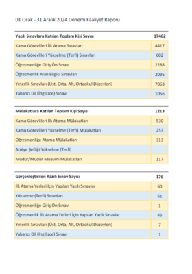 01 Ocak-31 Aralık 2024 Dönemi Faaliyet Raporu