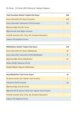 01 Ocak-31 Ocak 2025 Dönemi Faaliyet Raporu