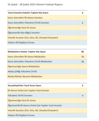 01 Şubat-28 Şubat 2025 Dönemi Faaliyet Raporu