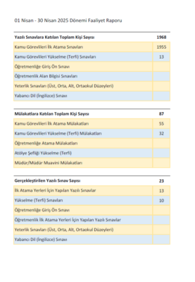 01 Nisan-30 Nisan 2025 Dönemi Faaliyet Raporu