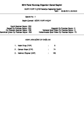 2014 yerel kuruluş organları genel seçimi: Güzelyurt ilçesi muhtar seçimi (Adaylara göre oy dağılımı)