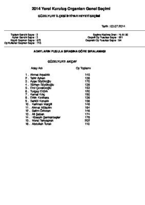 2014 yerel kuruluş organları genel seçimi: Güzelyurt ilçesi ihtiyar heyeti seçimi (Adayların oy sırasına göre sıralaması)