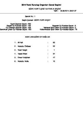 2014 yerel kuruluş organları genel seçimi: Güzelyurt ilçesi muhtar seçimi (Adayların oy sırasına göre sıralaması)