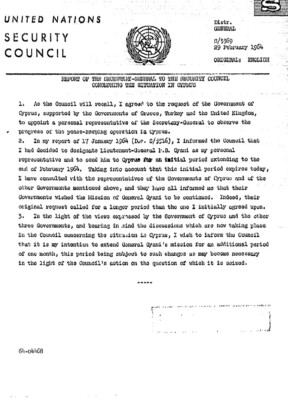 Report on the organization and operation of the United Nations Peace-Keeping Force in Cyprus