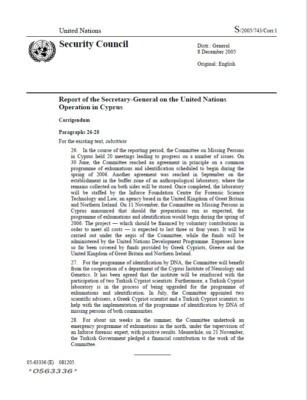 Report of the Secretary-General on the United Nations operation in Cyprus: Corrigendum