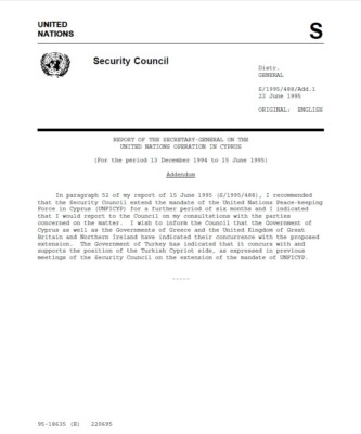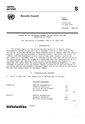 Report of the Secretary-General on the United Nations Operation in Cyprus, for the period 13 December 1994 to 15 June 1995