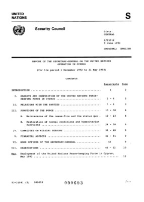 Report of the Secretary-General on the United Nations Operation in Cyprus, for the period 1 December 1992-31 May 1993