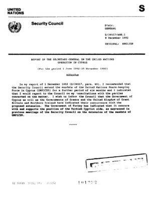Report of the Secretary-General on the United Nations Operation in Cyprus, for the period 1 June 1992 to 30 November 1992