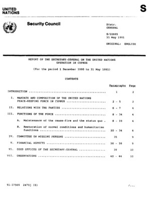 Report of the Secretary-General on the United Nations Operation in Cyprus, for the period 1 December 1990-31 May 1991