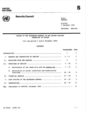 Report of the Secretary-General on the United Nations Operation in Cyprus, for the period 1 June-4 December 1989