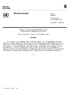 Report of the Secretary-General on the United Nations Operation in Cyprus, for the period 1 June to 30 November 1983