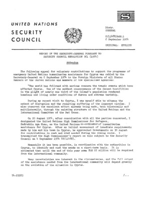 Report of the Secretary-General pursuant to Security Council resolution 361 (1974) : addendum