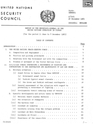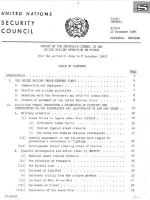 Report on the United Nations Operation in Cyprus (for the period 11 June to 8 December 1965)