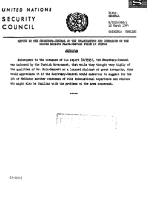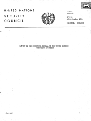 Report on the United Nations Operation in Cyprus : addendum covering the developments from 10 to 15 September 1964