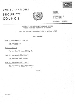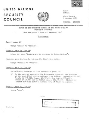 Report on the United Nations operation in Cyprus : corrigendum / by the Secretary-General