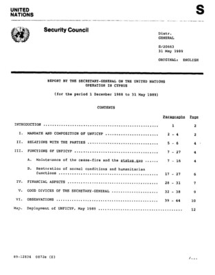 Report on the United Nations Operation in Cyprus for the period 1 December 1988 to 31 May 1989 / by the Secretary-General