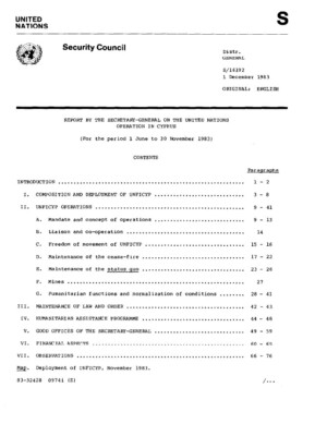 Report on the United Nations operation in Cyprus for the period 1 June to 30 November 1983