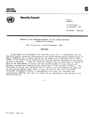 Report on the United Nations operation in Cyprus for the period 1 June-30 November 1987