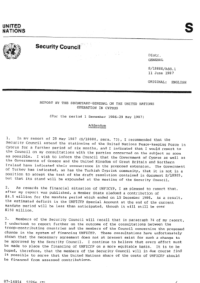 Report on the United Nations operation in Cyprus / by the Secretary-General, for the period 1 December 1986-29 May 1987