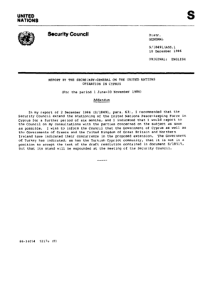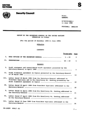 Report on the United Nations Operation in Cyprus for the period 1 June-30 November 1986