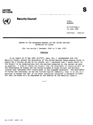Report on the United Nations operation in Cyprus for the period 1 December 1984 to 31 May 1985