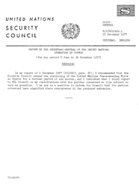 Report on the United Nations operation in Cyprus (for the period 8 June 1977 to 30 November 1977) / by the Secretary-General : addendum