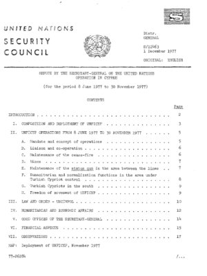 Report on the United Nations operation in Cyprus (for the period 8 June 1977 to 30 November 1977)
