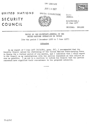 Report on the United Nations operation in Cyprus (for the period 7 December 1976 to 7 June 1977) : addendum