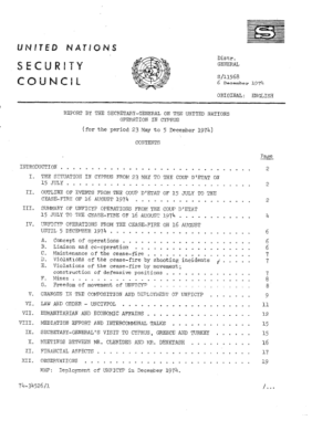 Report on the United Nations operation in Cyprus : (for the period 2 December 1973 to 22 May 1974) / by the Secretary-General