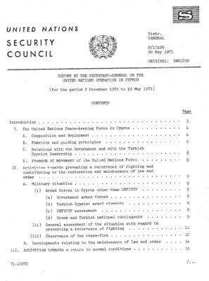 Report on the United Nations operation in Cyprus : (for the period 20 May to 30 November 1971) / by the Secretary-General