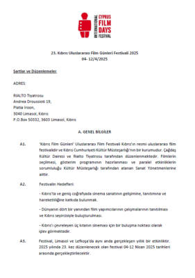 23. Kıbrıs Uluslararası Film Günleri Festivali 2025 (04-12/4/2025)