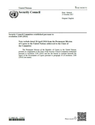 Note verbale dated 28 April 2016 from the Permanent Mission of Cyprus to the United Nations addressed to the Chair of the Committee: Security Council Committee Established pursuant to Resolution 2140 (2014)