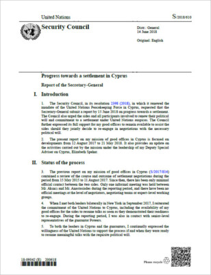 Progress towards a settlement in Cyprus: Report of the Secretary-General