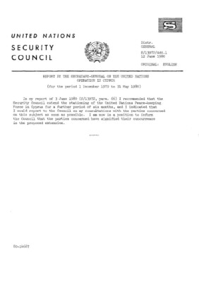 Report / by the Secretary-General on the United Nations operation in Cyprus, for the period 1 December 1979 to 31 May 1980