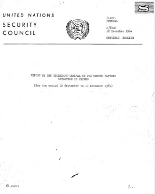 Report by the Secretary-General on the United Nations Operation in Cyprus : (for the period 10 September to 12 December 1964)