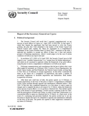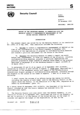 Report of the Secretary-General in connection with the Security Council’s comprehensive reassessment of the UN Peace-keeping Force in Cyprus