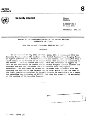 Report of the Secretary-General of the United Nations operation in Cyprus, for the period 1 December 1990-31 May 1991