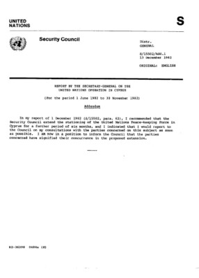 Report by the Secretary-General on the United Nations operation in Cyprus, for the period 1 December 1981 to 31 May 1982