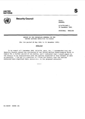 Report by the Secretary-General on the United Nations operation in Cyprus (for the period 28 May 1981 to 30 November 1981)