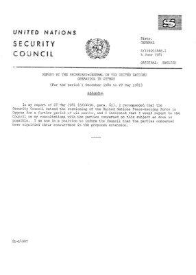 Report / by the Secretary-General on the United Nations Operation in Cyprus, for the period 1 December 1980 to 27 May 1981