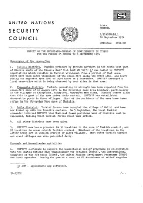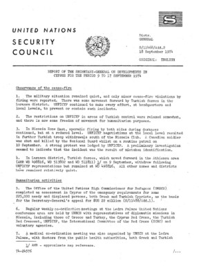 Report of the Secretary-General on developments in Cyprus for the period 25 August to 8 September 1974