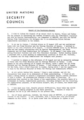 Report of the Secretary-General on developments in Cyprus for the period 3 to 15 October 1974