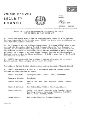 Report of the Secretary-General on developments in Cyprus for the period 20 to 25 August 1974