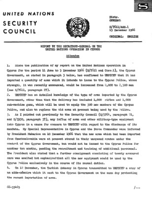 Report by the Secretary-General on the United Nations Operation in Cyprus : (for the period 11 June to 5 December 1966) : addendum