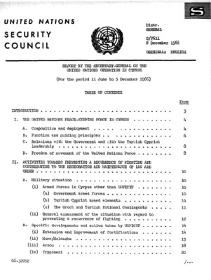 Report by the Secretary-General on the United Nations Operation in Cyprus : (for the period 11 June to 5 December 1966)