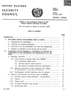 Report by the Secretary-General on the United Nations Operation in Cyprus : (for the period 11 March to 10 June 1966)