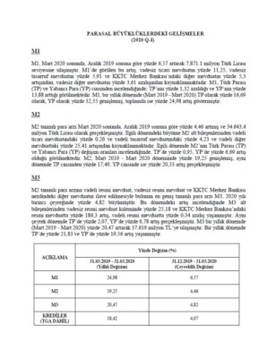 Para arzı raporu: Parasal büyüklüklerdeki gelişmeler (2020-I)