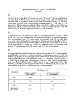 Para arzı raporu: Parasal büyüklüklerdeki gelişmeler (2019-IV)
