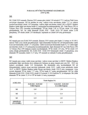Para arzı raporu: Parasal büyüklüklerdeki gelişmeler (2019-III)
