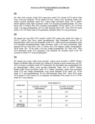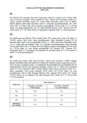 Para arzı raporu: Parasal büyüklüklerdeki gelişmeler (2019-I)